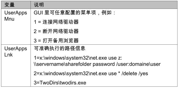 【 UserAppsMnu】和 【 UserAppsLnk】里的各行是一致的。