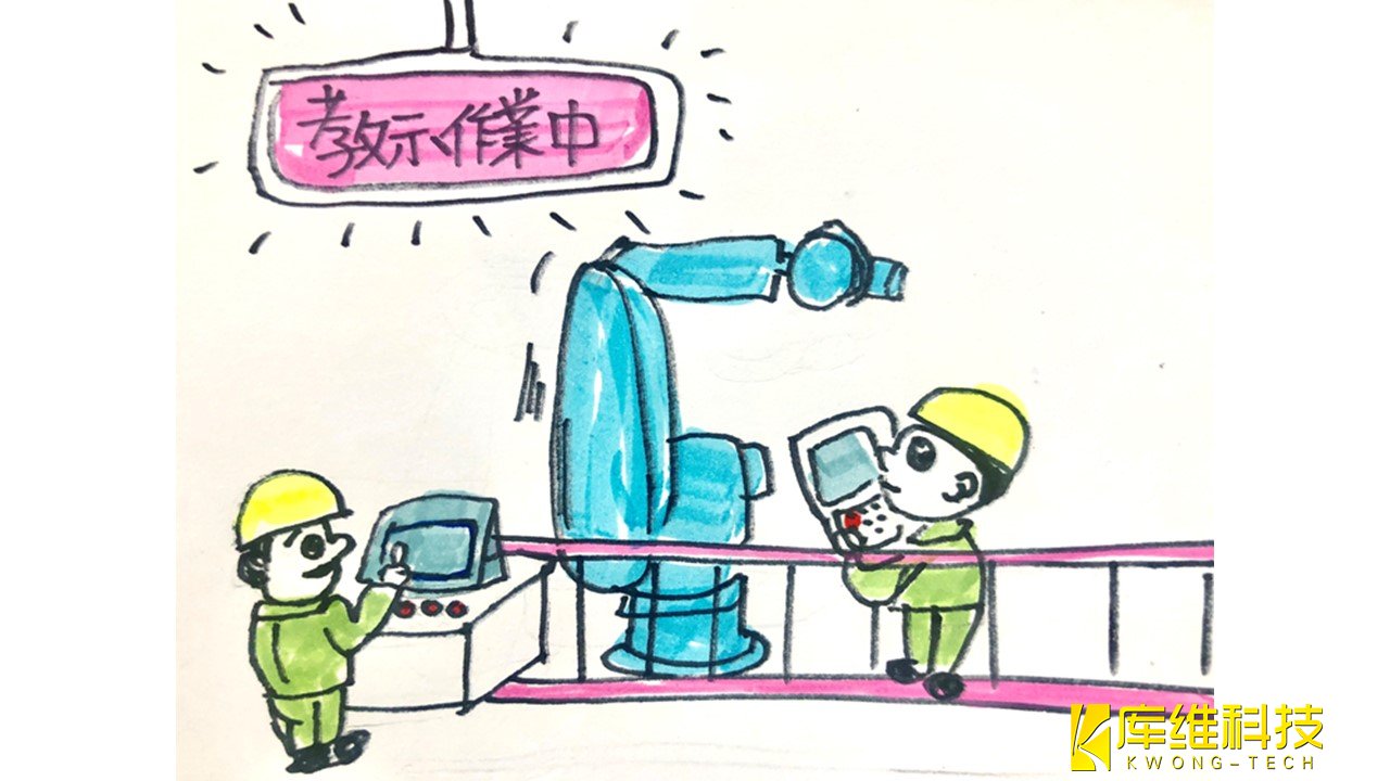 但工業(yè)機器人的大部分示教工作都是在驅(qū)動源(伺服電源)開啟的情況下完成的,而且工作必須在工業(yè)機器人的可移動區(qū)域內(nèi)完 成。這是一項不符合這兩個條件的危險任務(wù)。因此,在教學(xué)工作中要不斷地有“工業(yè)機器人不知道何時動”的危機感,思考“故 障對策”。